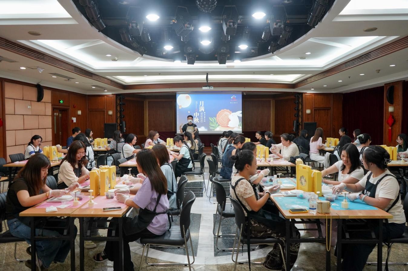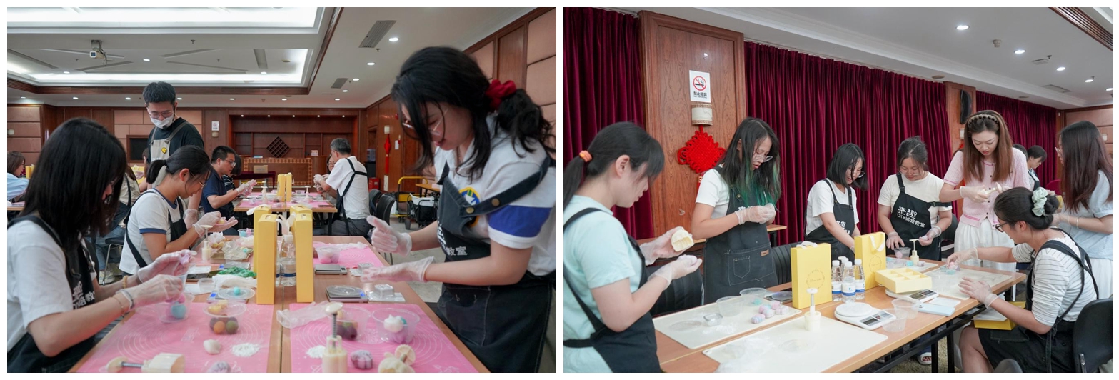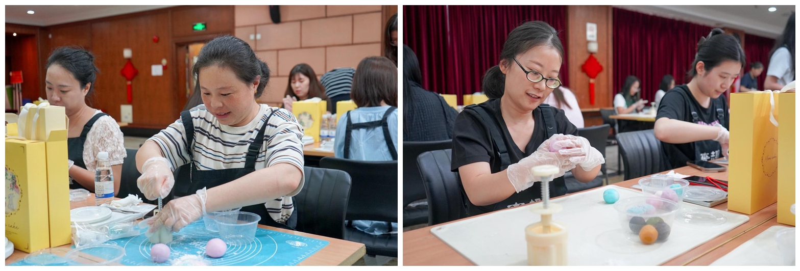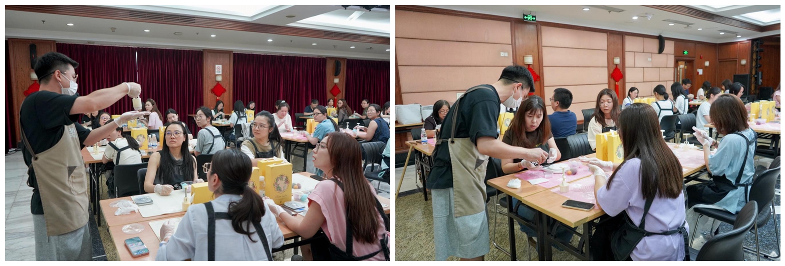 活動現(xiàn)場,清甜的餡料香與歡聲笑語交織縈繞,員工們紛紛動手體驗冰皮月餅的制作過程。從揉皮、包餡到壓模成型,大家專注投入,巧手為媒,共織一場穿越古今的中秋綺夢。